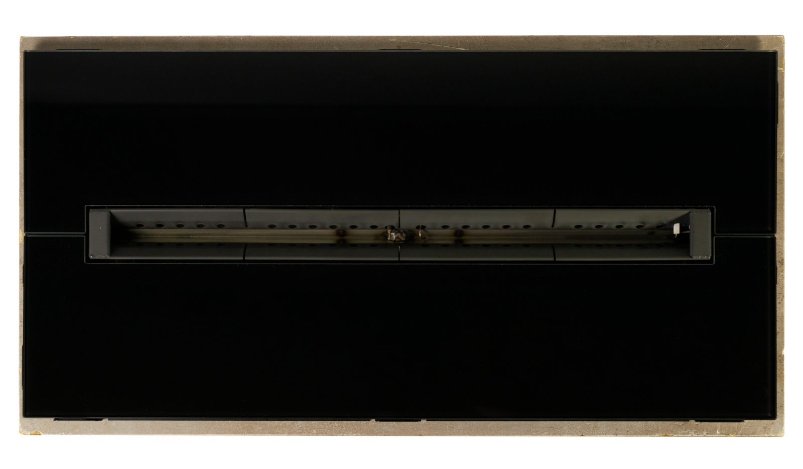 BME70 CON BASE DE CRISTAL NEGRO, quemador de bioetanol de encendido y apagado electrónico. No requiere salida de humos, instalación económica y sencilla.